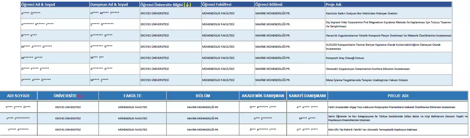 Projelerde yer alan bütün öğrencilerimizi ve danışmanlık yapan akademisyenlerimizi kutluyor, başarılarının devamını diliyoruz.